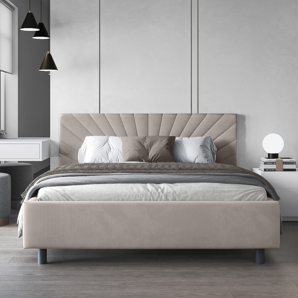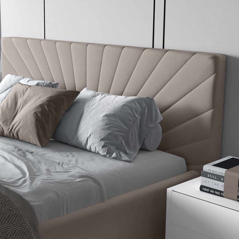 Кровать «Miranda» в минималистичном стиле принесет комфорт и уют в спальную зону. Деликатная строчка на изголовье в форме исходящих лучей смотрится лаконично и стильно.