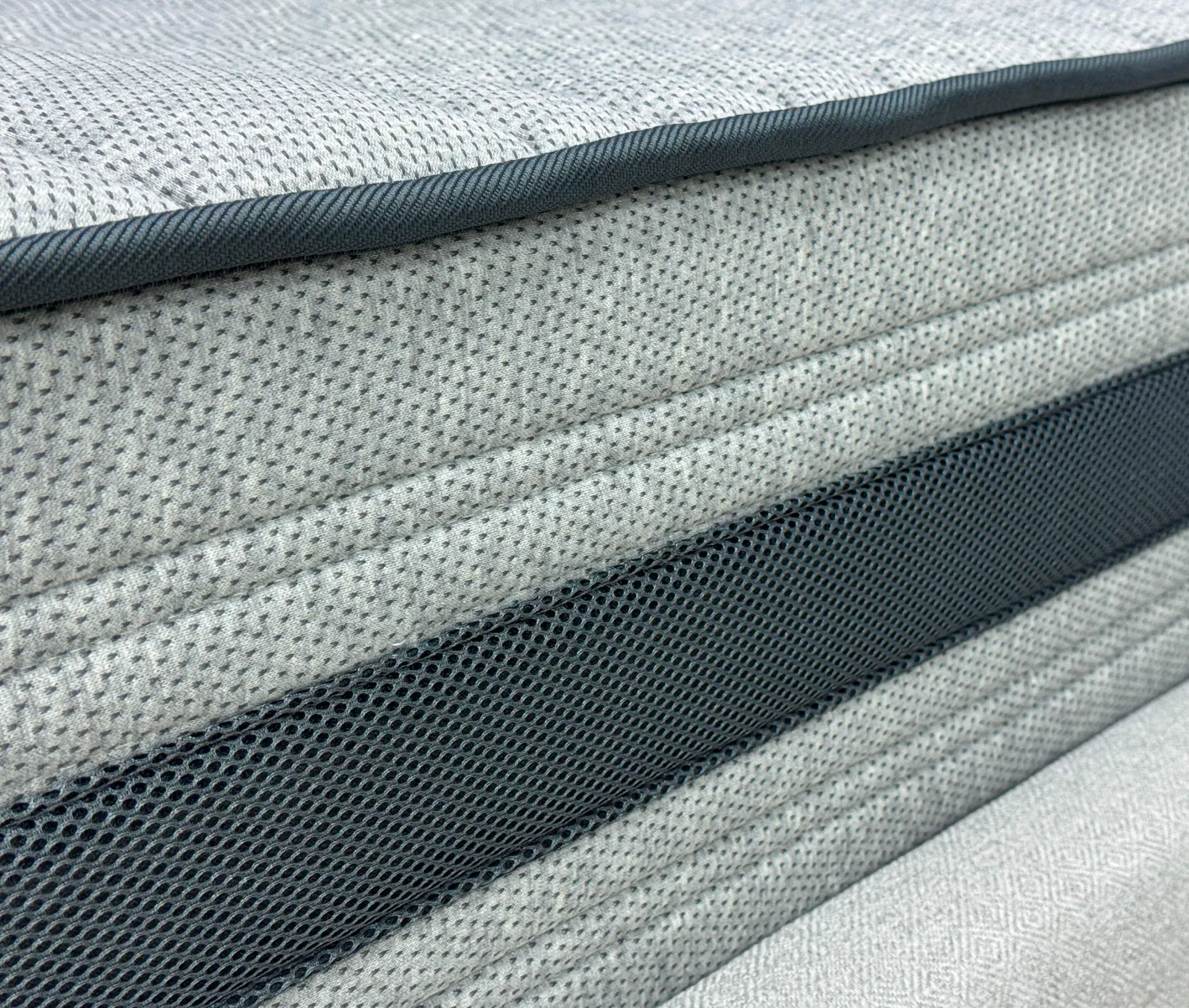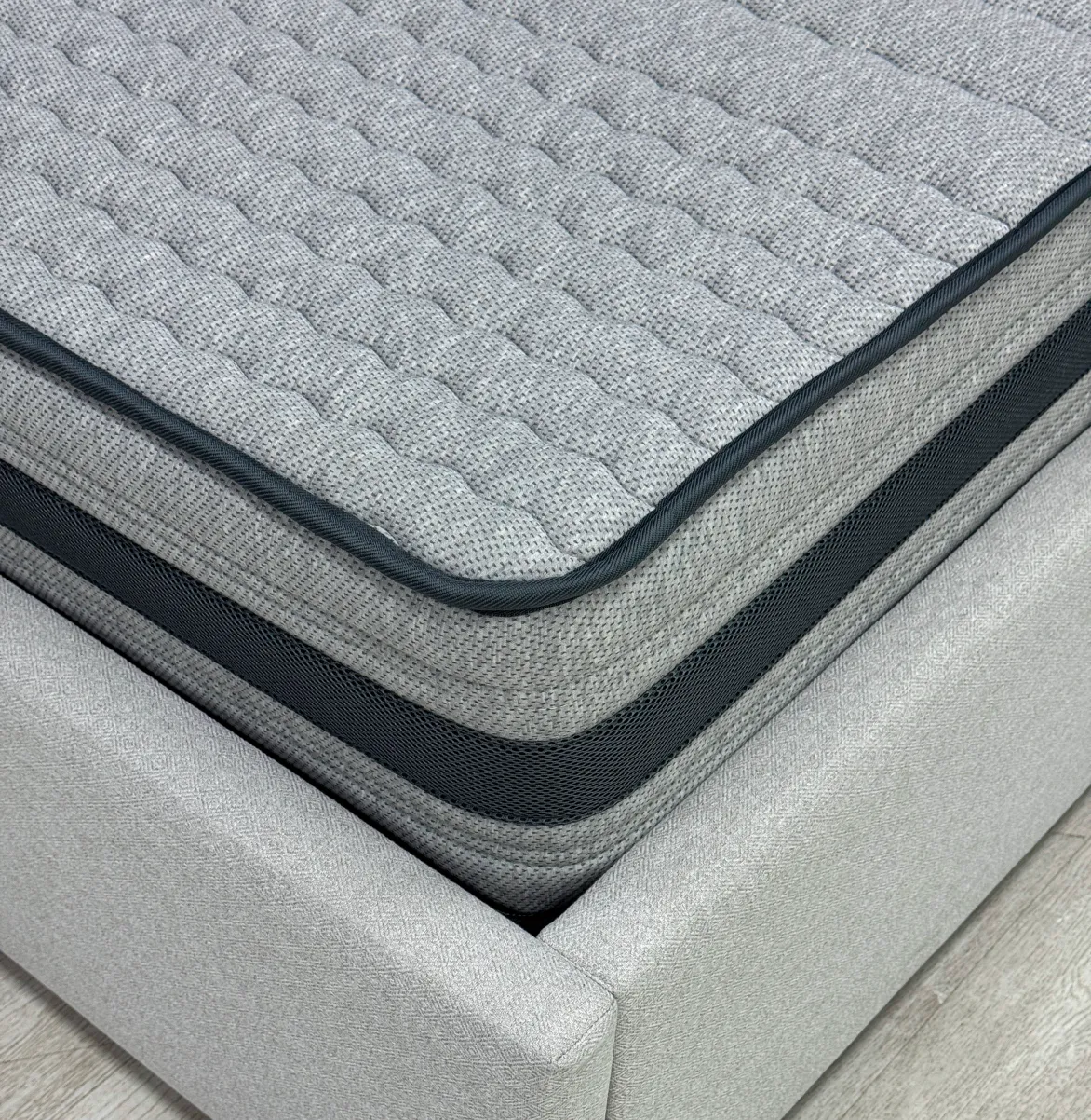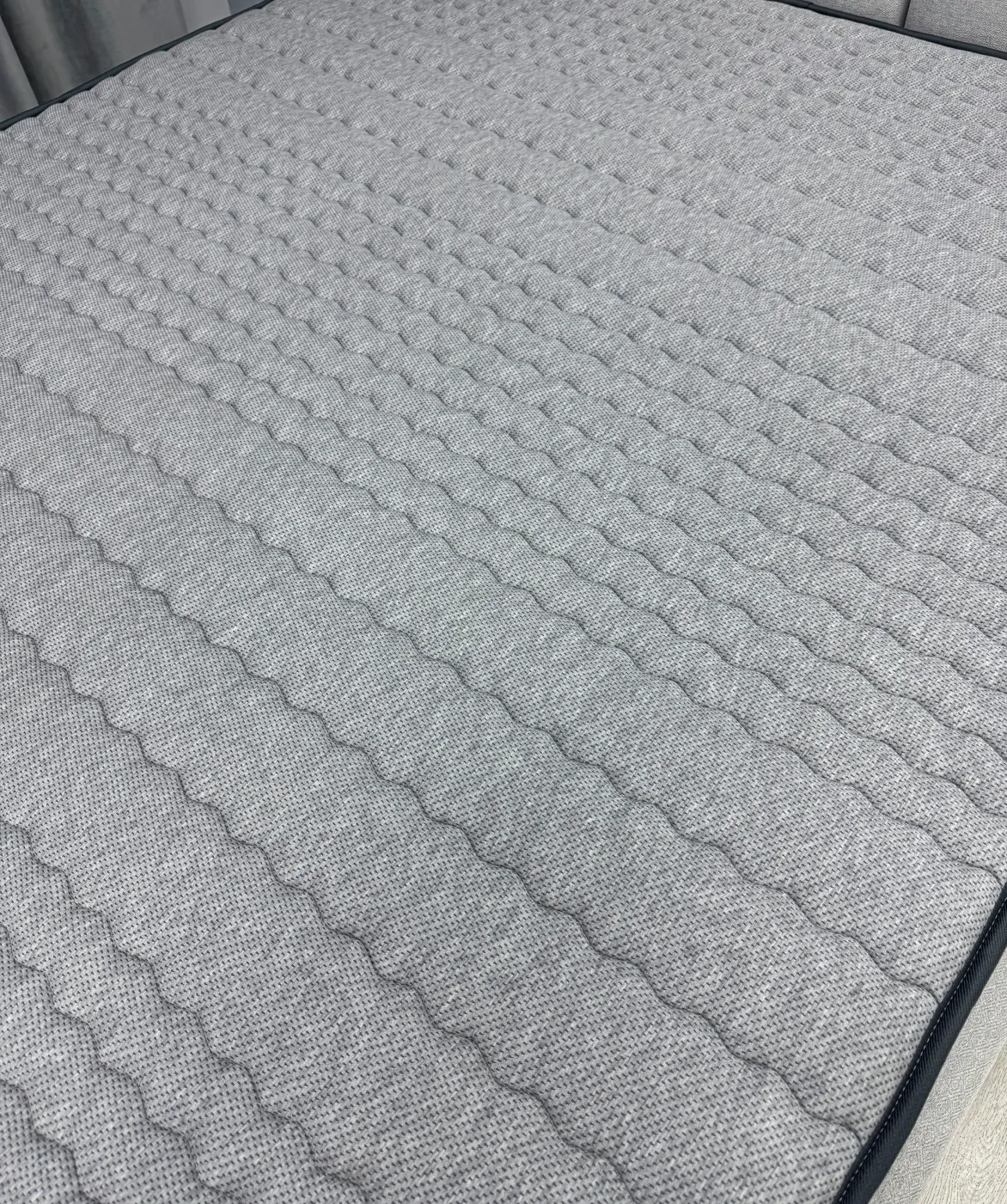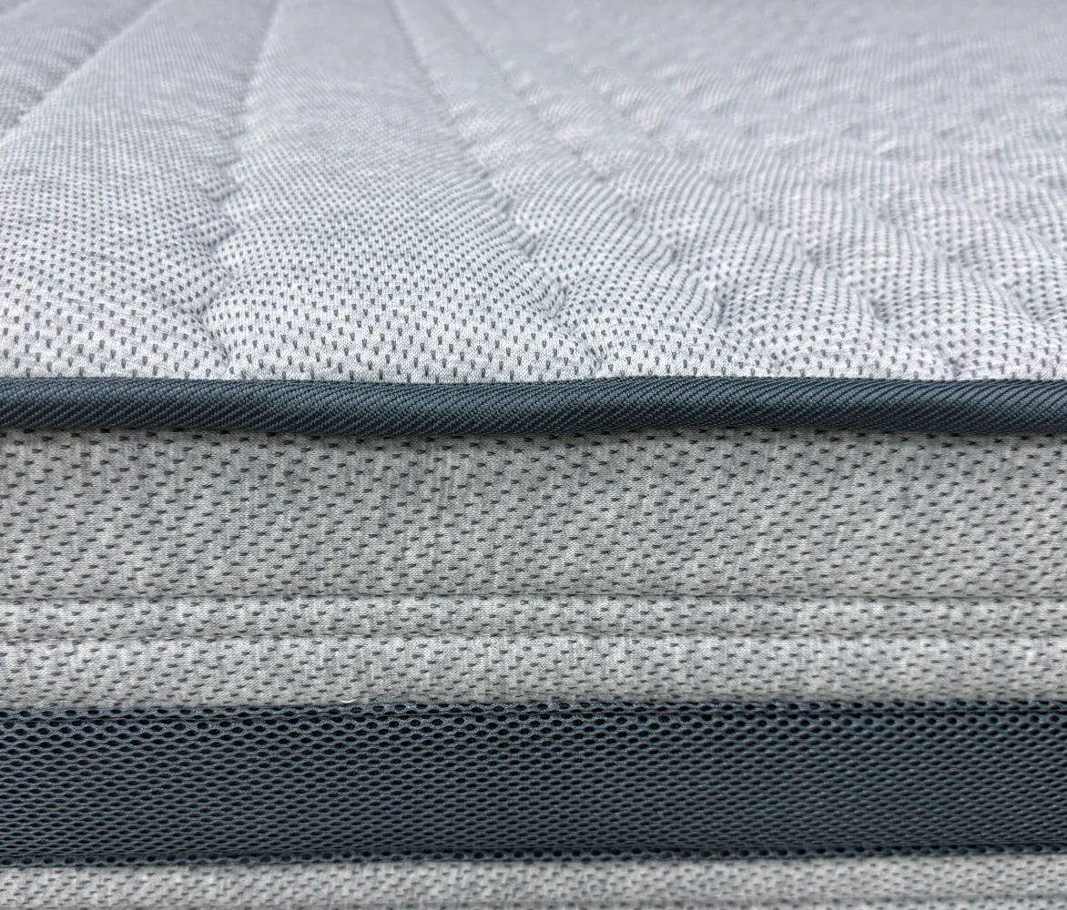 Трикотаж «PESCODY» - Премиальный меланжевый итальянский трикотаж с натуральными волокнами в трендовом приятном сером цвете. Благодаря своей расцветке ткань смотрится стильно и более неприхотлива к незначительным загрязнениям. Натуральные смесовые нити в составе способствуют более эффективному тепло обмену и обладают высокой гигроскопичностью, что обеспечивает комфортный микроклимат спального мест