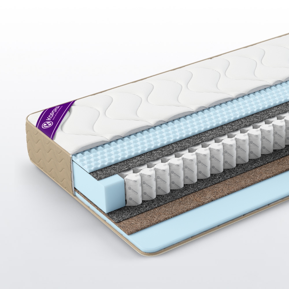 Кокосовая койра 10 мм— натуральный наполнитель из спрессованных волокон кокосового ореха, пропитанных составом на основе латекса. Прочен, долговечен, придает упругость и жесткость матрасу, гипоаллергенный, нетоксичный, не подвержен гниению, не является средой обитания клещей и паразитов, обладает низкой остаточной деформацией, естественной влаго- и теплопроводностью.