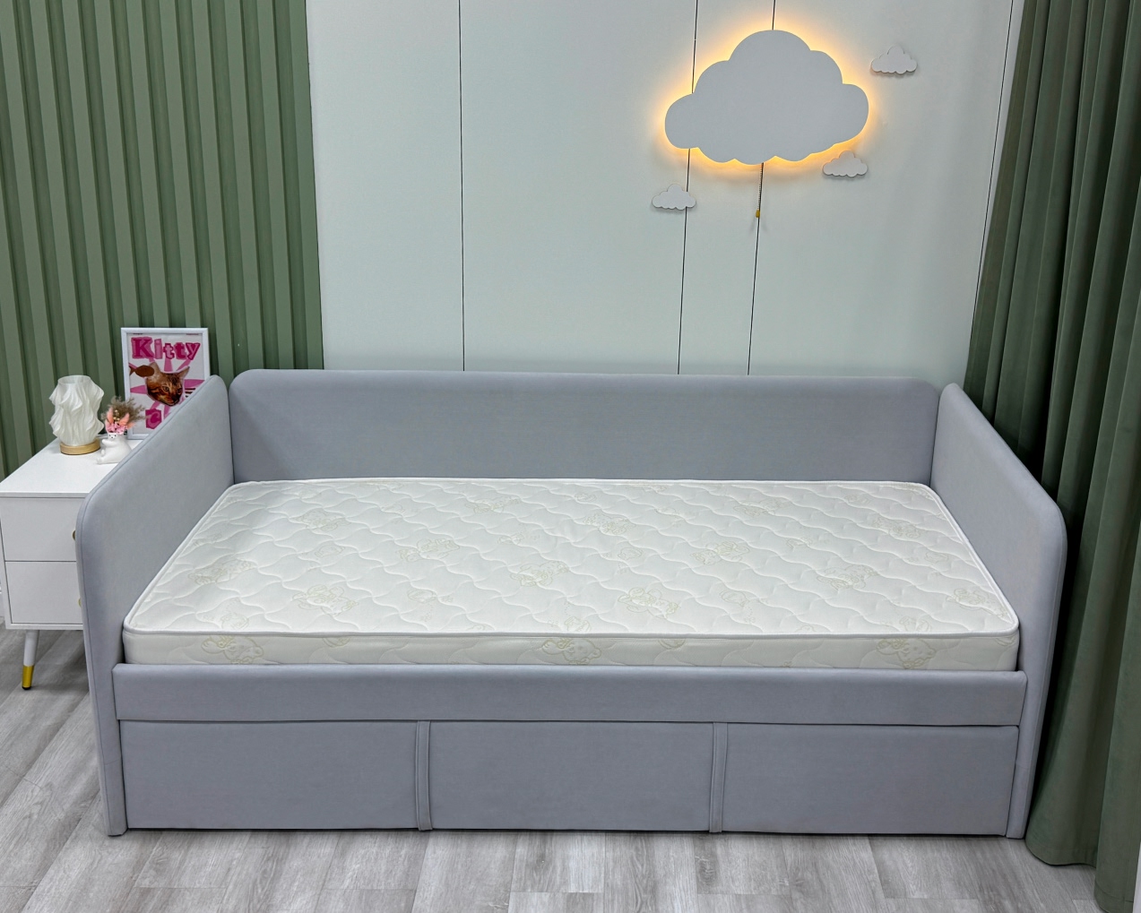 Трикотаж «Teddy» — это невероятно мягкая и уютная ткань с нежной, слегка пушистой поверхностью, напоминающей плюшевого мишку. Она создана специально для детских матрасов, чтобы каждый сон малыша был максимально комфортным и тёплым. Благодаря своей структуре трикотаж «Teddy» прекрасно сохраняет тепло, оставаясь при этом дышащим материалом, который поддерживает оптимальный микроклимат. Ткань гипоаллергенна, не раздражает нежную кожу ребёнка и устойчива к истиранию, сохраняя свою мягкость и привлекательный вид на долгие годы.