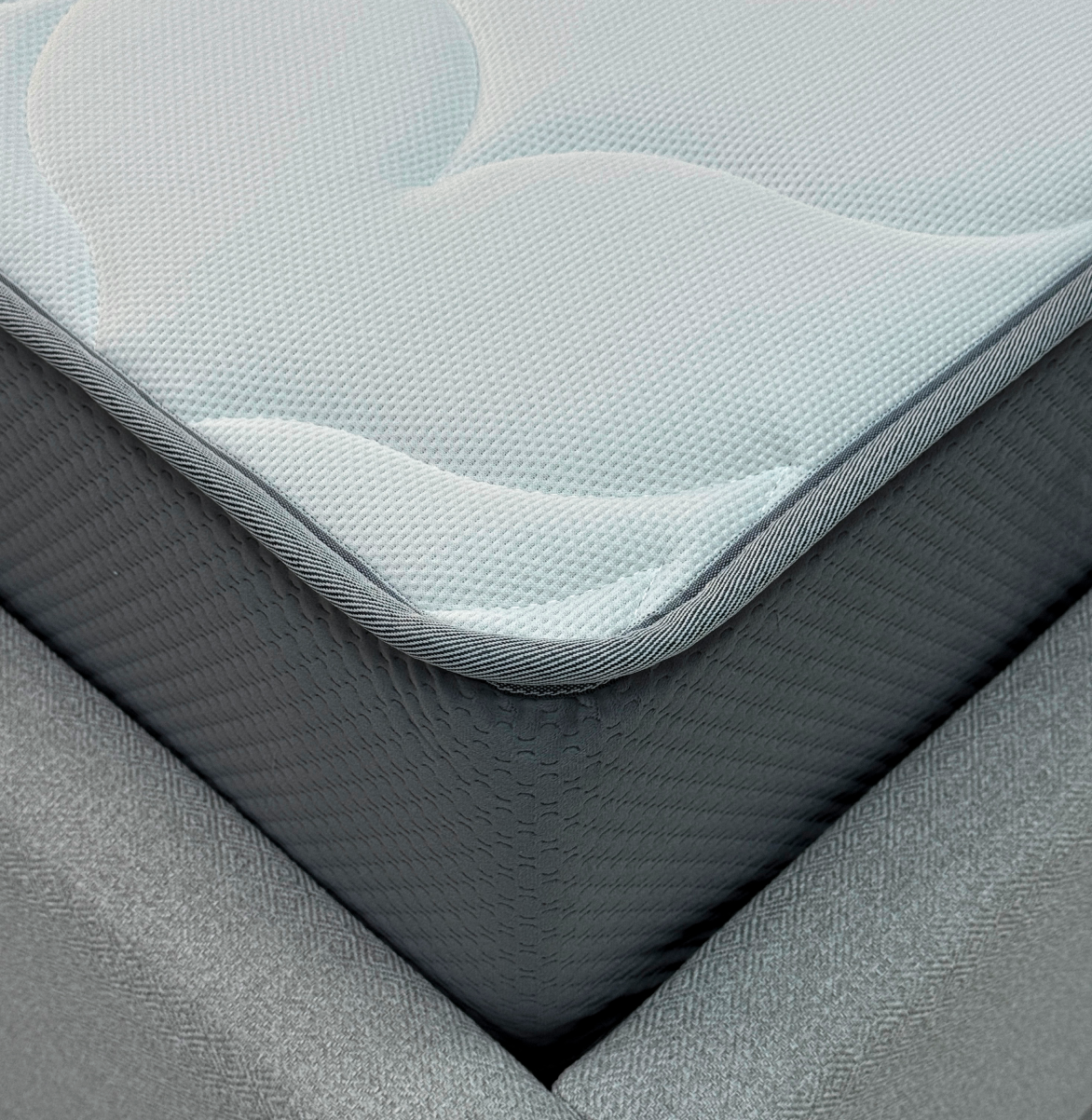 Короб ППУ - Элемент конструкции матраса, усиливающий жесткость пружинных моделей по краям, предотвращая проседание при регулярной нагрузке. Особенно важен при локальных нагрузках на борт матраса (посадка, подъем). Используются два вида пен: стандартная у изголовья и повышенной плотности в боковых зонах.